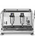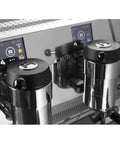 The digital display enhances precision, allowing for boiler temperature adjustments in increments of 0.1 degrees Celsius and providing individual shot timers for each group.