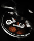 A magnetic attachment system makes the needle distributor easy to securely place and remove the needle distributor from the filter basket, offering a hassle-free, mess-free experience during preparation.